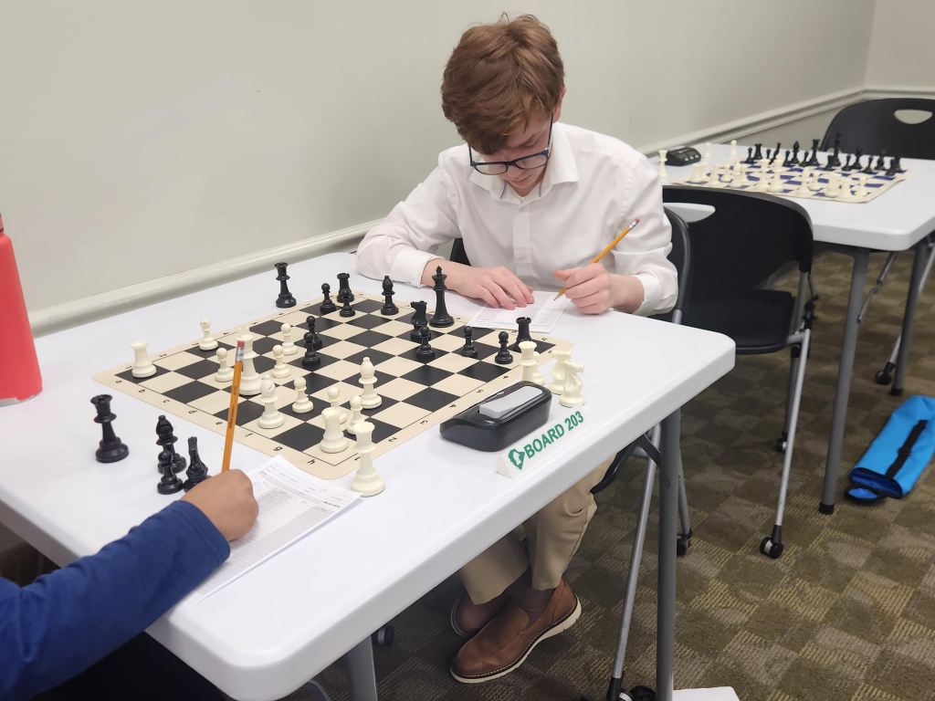 With a fresh batch of players in the U1300 from all their ascension through 2026, six players battled it out over the boards. Both Gurnoor Farmaha and Trevor O’Kane makes their triumphant returns to our chess club going 3.0 / 4 points on the day finishing tied for first place. Darby Williams, Vedant Tiwari and Ryan Kim all finish in a 3-way log jam (tie) for third place at 2.0 / 4 points.